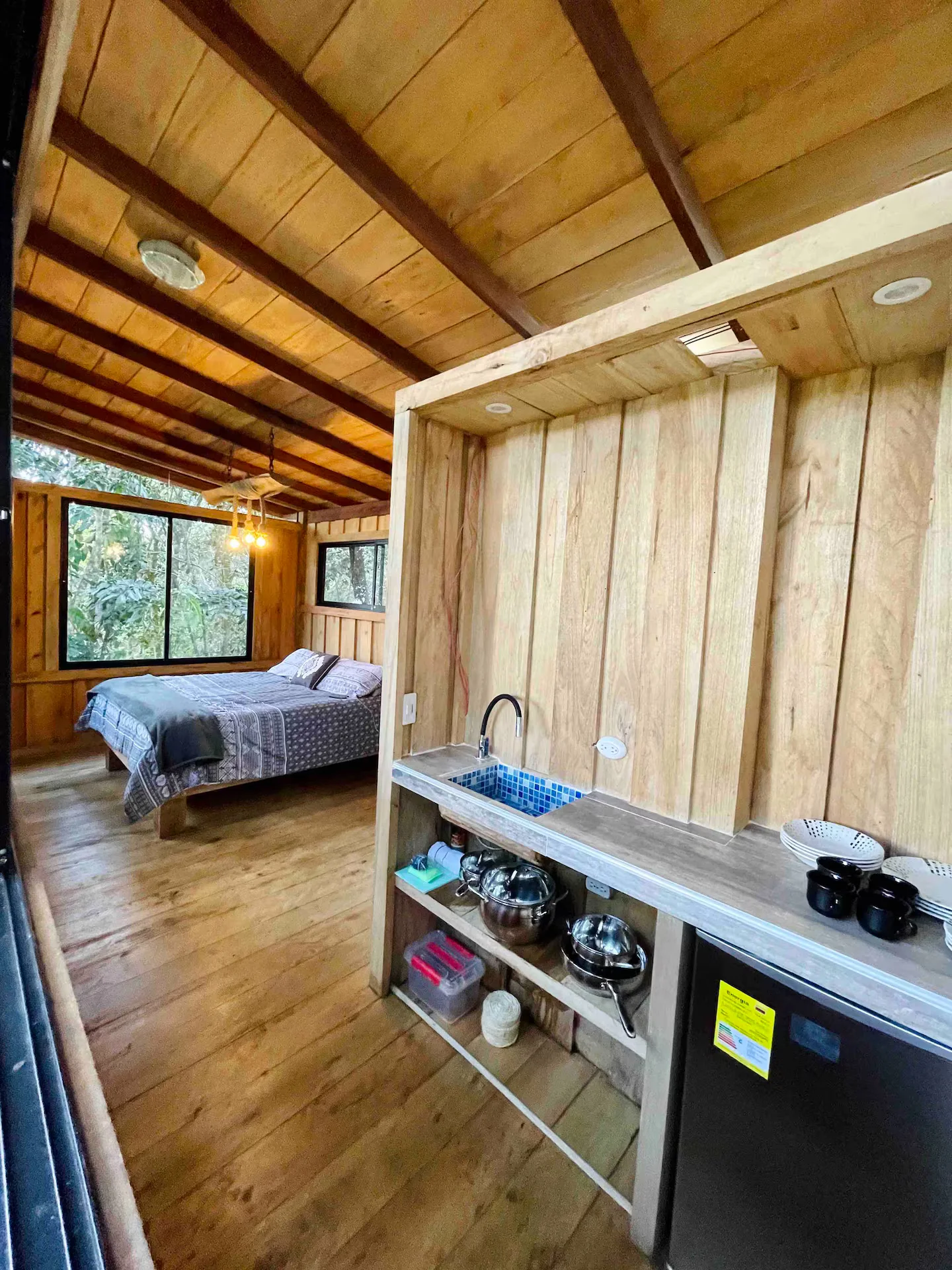 Esta acogedora cabaña ha sido diseñada para ofrecerte una experiencia de paz y tranquilidad en el corazón de la naturaleza. Ideal para hasta 6 huéspedes, este espacio te invita a escapar del caos de la ciudad y a disfrutar de un ambiente renovado con todas las comodidades.