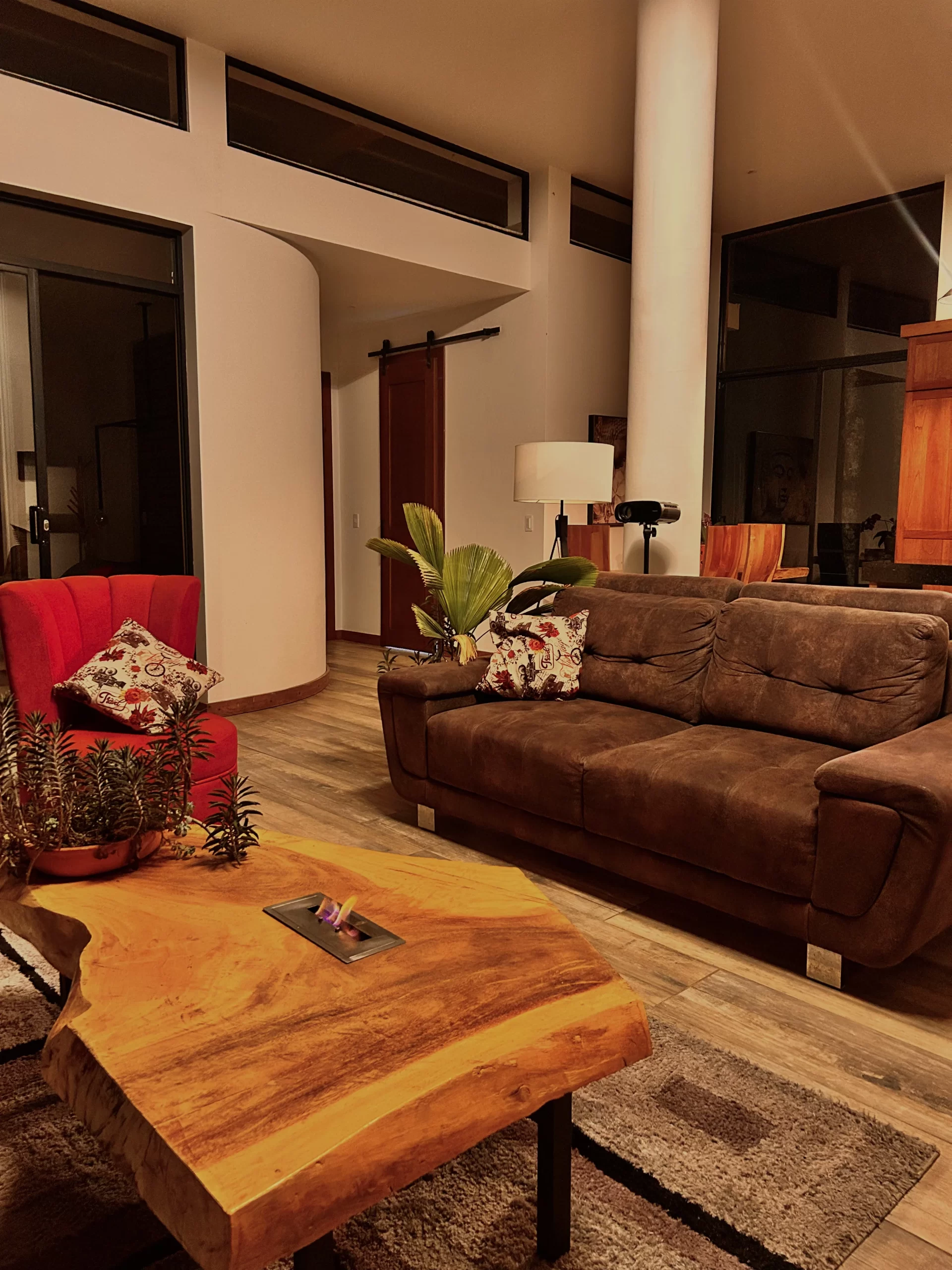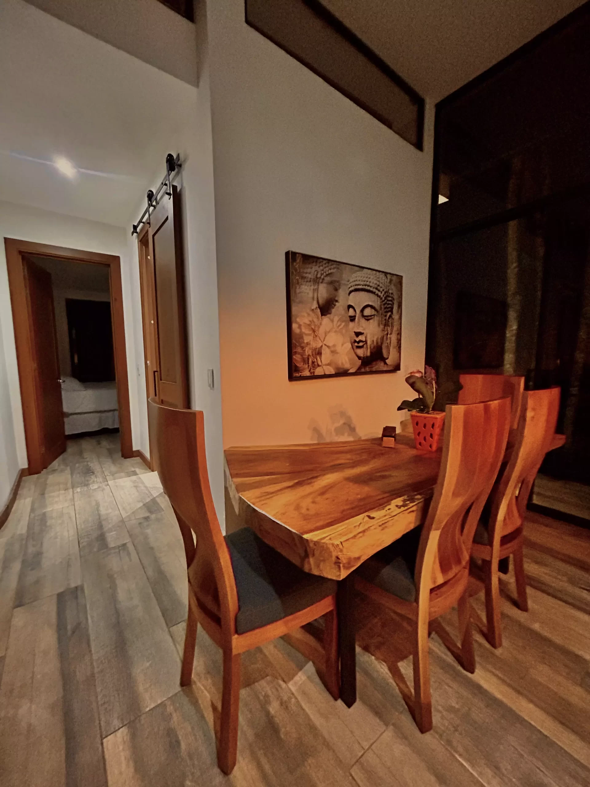 El segundo piso de Casa Fénix es un refugio de lujo diseñado para la serenidad de hasta 6 huéspedes. Este espacio fusiona la comodidad con la naturaleza, ofreciendo dos elegantes habitaciones cada una con cama king size, en la sala un sofá cama y tatami adicional.